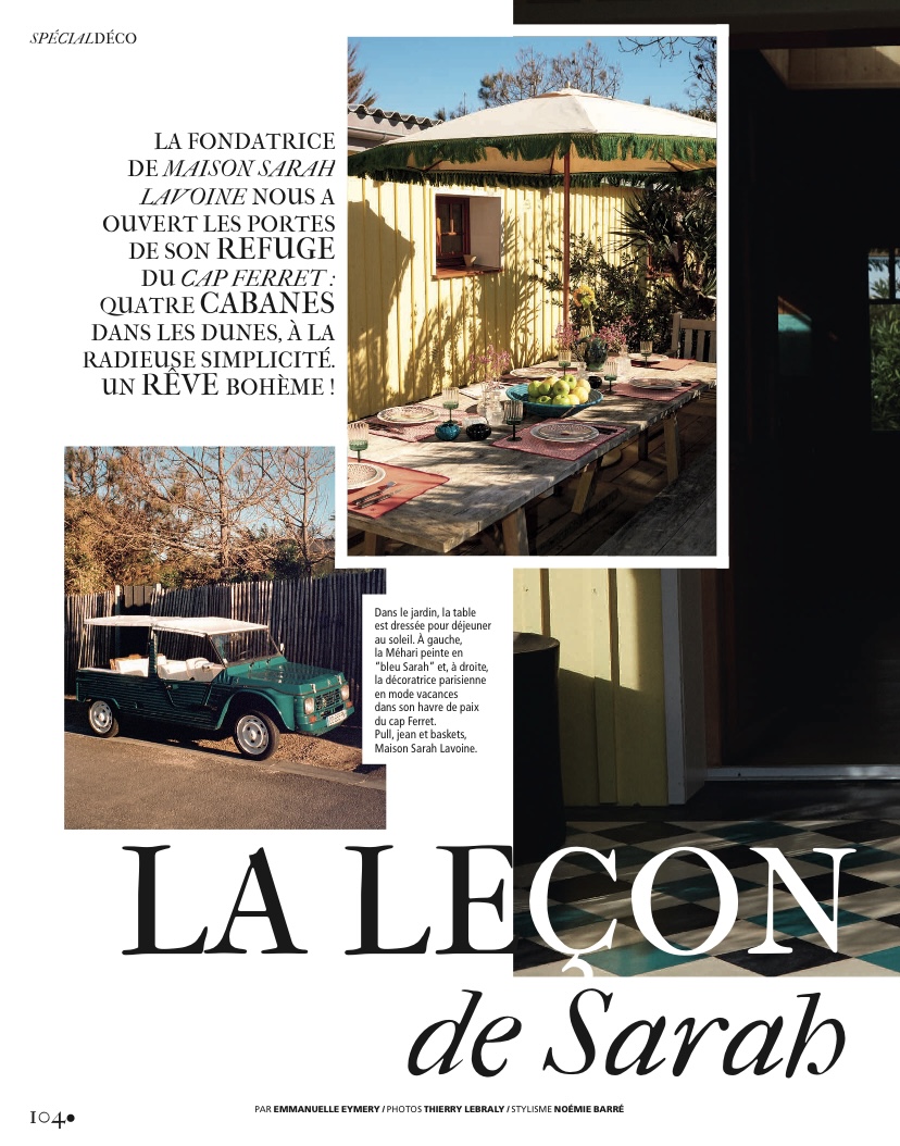 Reportage pour Madame Figaro. « La leçon de déco » de Sarah Poniatowski Lavoine dans sa maison du Cap Ferret.